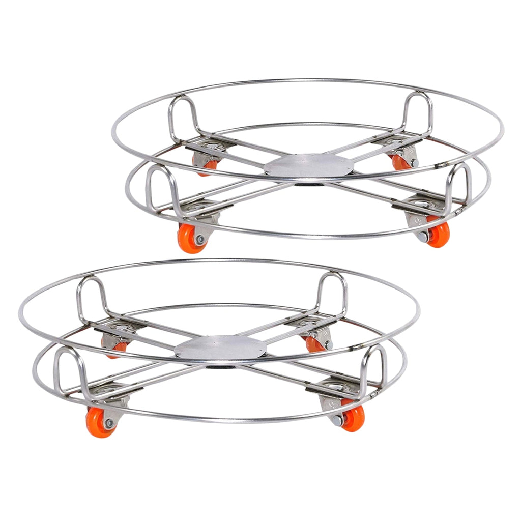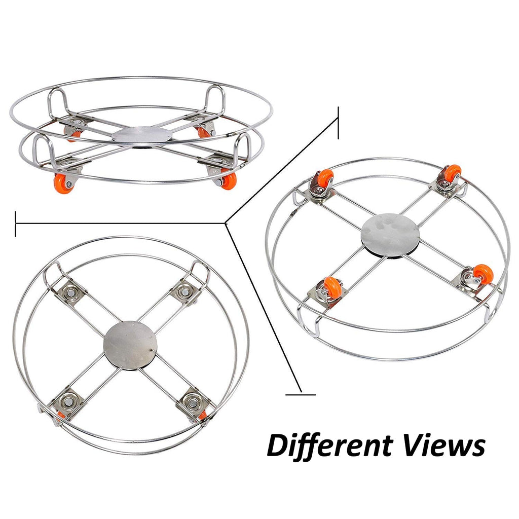 Stainless Steel Cylinder Trolly with 4 Wheels (Silver)