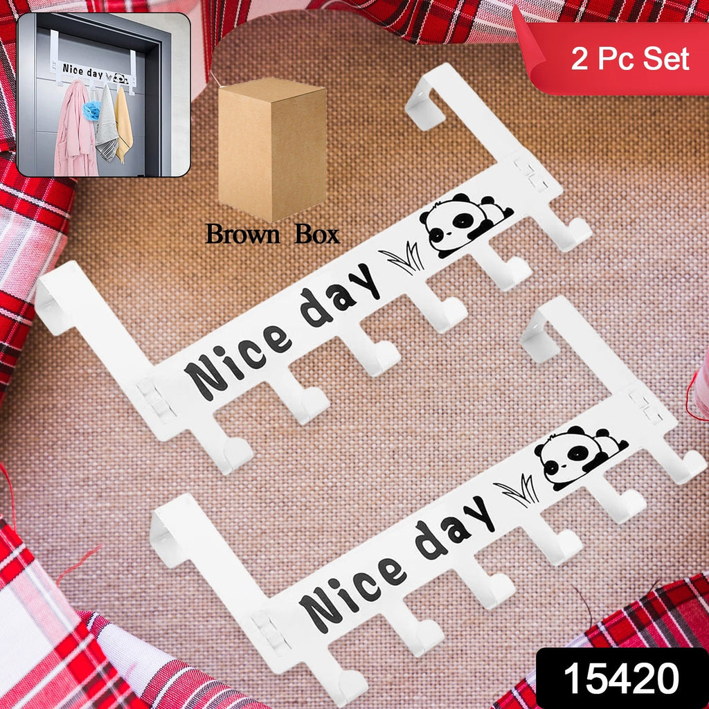 Heavy-Duty Carbon Steel Cartoon Nice Day Over Door Hook Hanger Rack, Towel Hanger, Removable Door Hook, Coat, Scarf, Cloths Hanger (2 pc / 6 Hook / White Color)