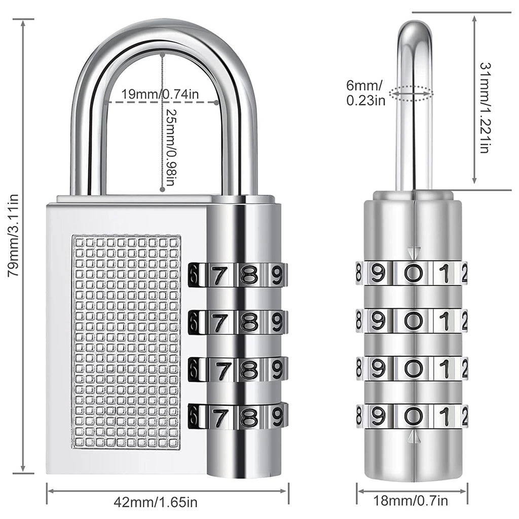 This high-quality 4-digit combination padlock is designed to provide strong, reliable, and keyless security for your personal belongings. Crafted from durable metal with a premium polished finish, the lock offers excellent resistance against cutting, breaking, and tampering. The resettable password mechanism allows you to set and reset your unique 4-digit code anytime, providing enhanced flexibility and convenience. Its compact yet sturdy structure makes it ideal for gym lockers, cabinets, travel bags, school storage units, office drawers, and more. With its elegant design, smooth rotation dials, and slip-resistant textured grip, this padlock ensures both style and safety in everyday use.