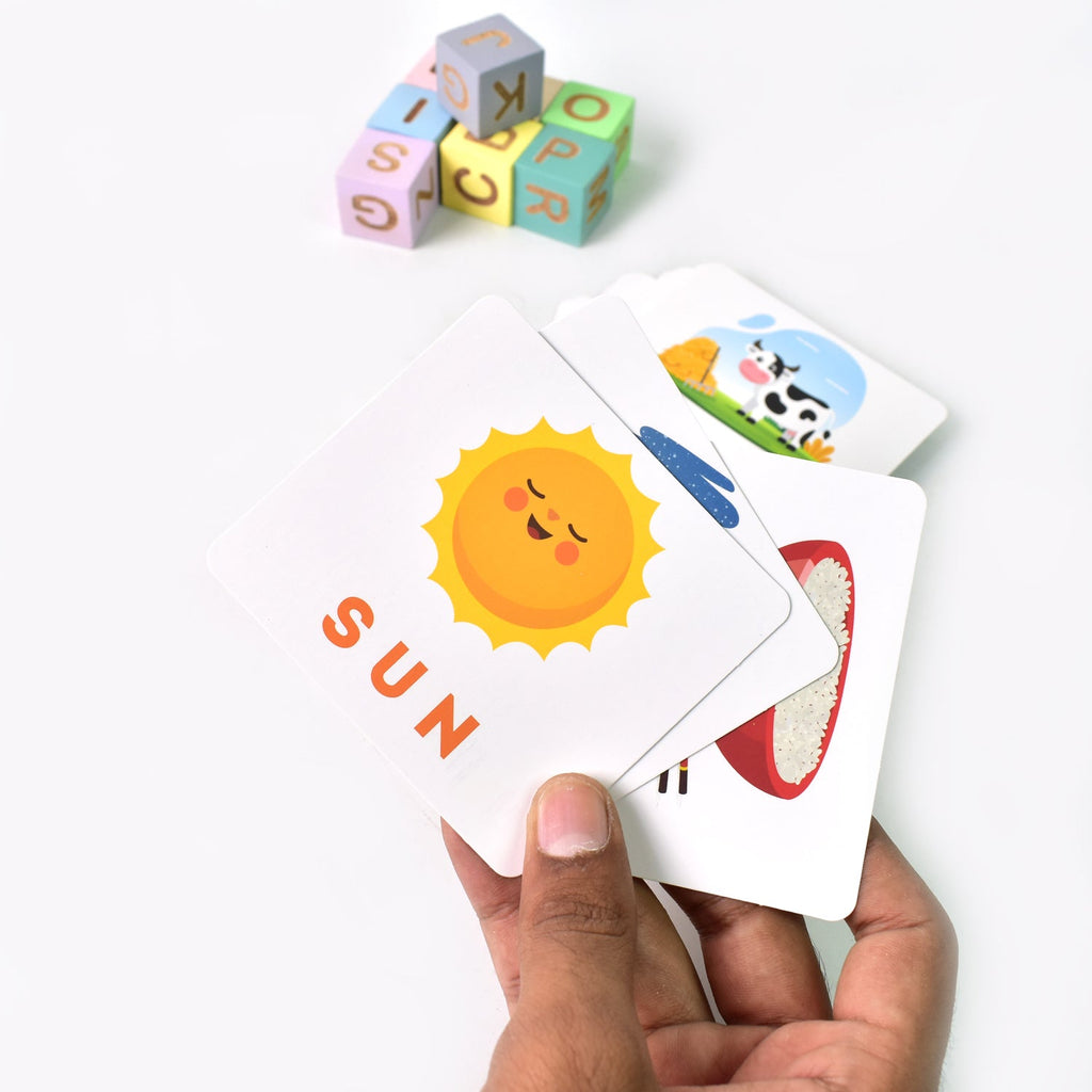 • 【Spelling & Reading Educational Toys】- The kids can recognize objects based on each flash cards picture, or spell out corresponding words with letter cubes. Color pictures increase kids interest in learning and use cubes to spell words flexibly to improve children's memory.Great kindergarten learning games for kids 5-7.